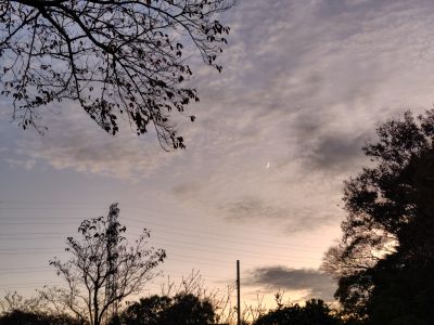 秋の夕暮れ、三日月が美しく、畑仕事が進んだ一日に感謝しました。