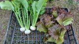 今週(11月24日)、関東南部の家庭菜園で収穫できた野菜は、かぶ4つ、リーフレタス7枚、紅芯大根1本、里芋1株でした。