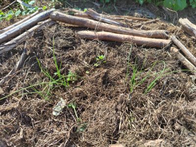 もう青々とした草はないため、今回は枯れ草を利用しています。