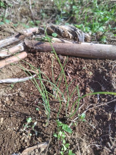 ネギの根元がほんの少し太くなり、しっかりと地面に根付いた力強さを感じます。
